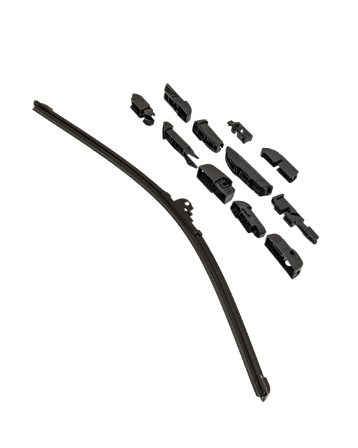 High-performance universal wiper blade designed for maximum visibility and long-term durability. Equipped with 11 interchangeable adapters, this model ensures compatibility with 99% of vehicles on the market, including those with U-hook, side pin, bayonet, push button, and top lock systems.